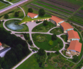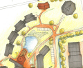 - geschakelde woonblokken met units voor acht studenten, zaal/restaurant voor cultuuractiviteiten